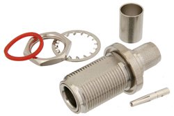PE3W00211 is a N female bulkhead to TNC male cable using LMR-400-UF coax. This Pasternack N female bulkhead to TNC male cable assembly uses a 50 Ohm N for connector 1 and a 50 Ohm TNC for connector 2.