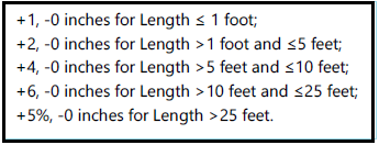 If not provided, cable length tolerances are within the IPC standards (2022-24) as shown