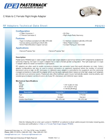 RF Adapters Technical Data Sheet PE9293