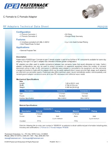 Pasternack’s PE9208 type C female to type C female adapter is part of our full line of RF components available for same-day