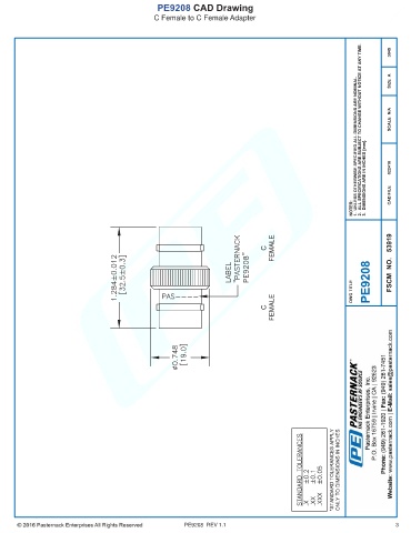 PE9208 CAD Drawing C Female to C Female Adapter PE9208 REV 1.1 3