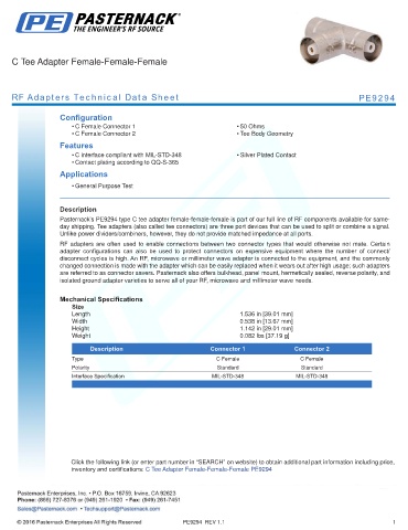 RF Adapters Technical Data Sheet PE9294