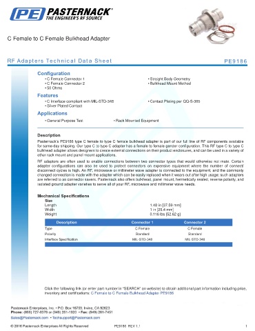 RF Adapters Technical Data Sheet PE9186