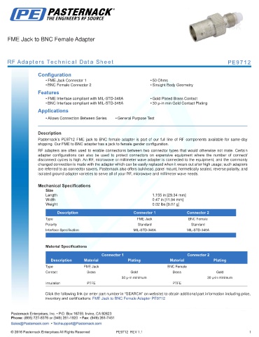 RF Adapters Technical Data Sheet PE9712