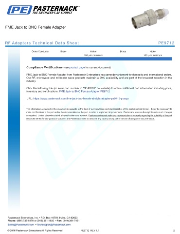 inventory and certifications: FME Jack to BNC Female Adapter PE9712