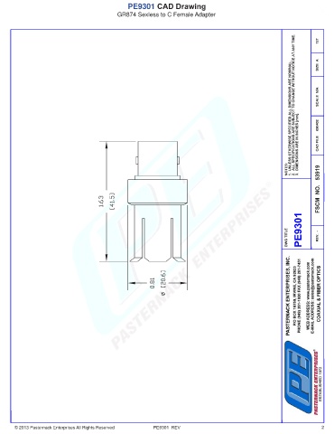 PE9301 CAD Drawing GR874 Sexless to C Female Adapter © 2013 Pasternack Enterprises All Rights Reserved PE9301 REV 2