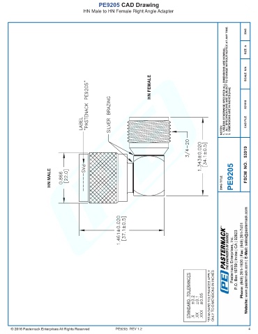 PE9205 CAD Drawing HN Male to HN Female Right Angle Adapter PE9205 REV 1.2 4
