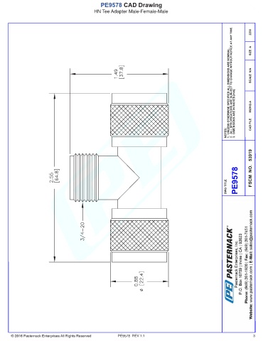 PE9578 CAD Drawing HN Tee Adapter Male-Female-Male PE9578 REV 1.1 3