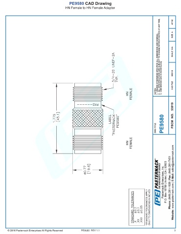 PE9580 CAD Drawing HN Female to HN Female Adapter PE9580 REV 1.1 3