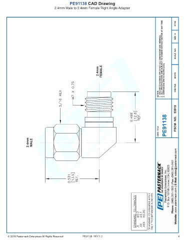 any representation or warranty regarding the suitability of the part described herein for any particular purpose, and Pasternack does not assume any liability arising out of the use of any part or documentation.
