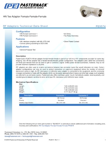 Pasternack’s PE9574 HN tee adapter female-female-female is part of our full line of RF components available for same-day