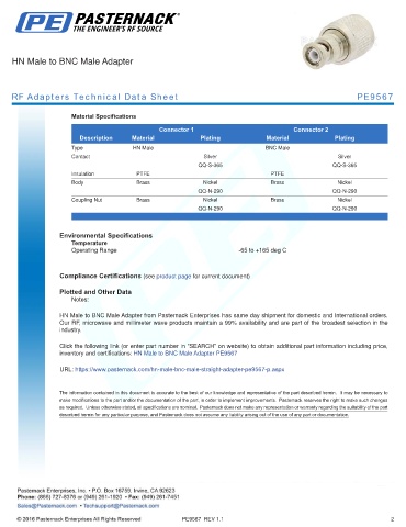 RF Adapters Technical Data Sheet PE9567