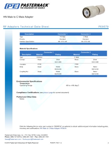 inventory and certifications: HN Male to C Male Adapter PE9579
