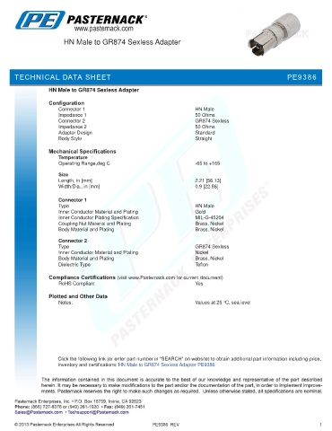 inventory and certifications: HN Male to GR874 Sexless Adapter PE9386