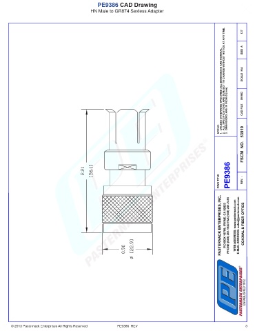 PE9386 CAD Drawing HN Male to GR874 Sexless Adapter © 2013 Pasternack Enterprises All Rights Reserved PE9386 REV 3