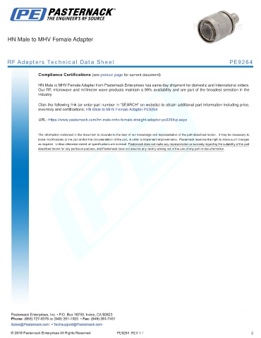 RF Adapters Technical Data Sheet PE9264