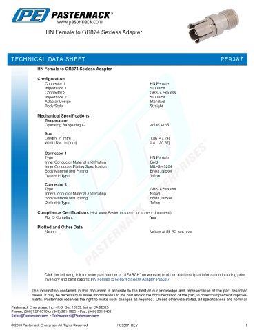inventory and certifications: HN Female to GR874 Sexless Adapter PE9387