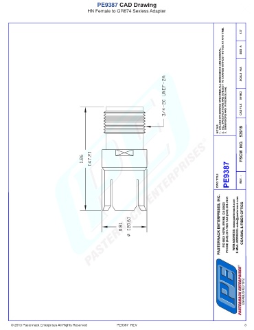 PE9387 CAD Drawing HN Female to GR874 Sexless Adapter © 2013 Pasternack Enterprises All Rights Reserved PE9387 REV 3