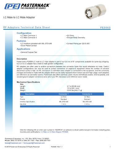 Pasternack’s PE9569 LC male to LC male adapter is part of our full line of RF components available for same-day shipping.