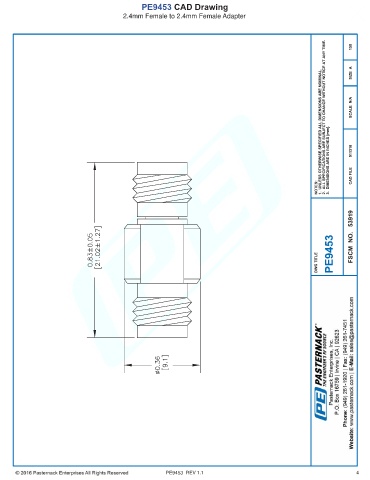 PE9453 CAD Drawing 2.4mm Female to 2.4mm Female Adapter PE9453 REV 1.1 4
