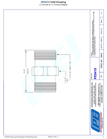 PE9419 CAD Drawing LC Female to LC Female Adapter PE9419 REV 1.1 3