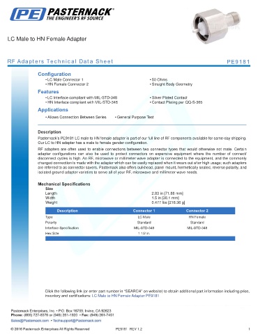 Pasternack’s PE9181 LC male to HN female adapter is part of our full line of RF components available for same-day shipping.