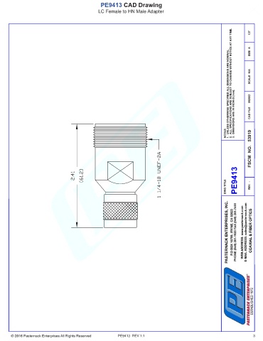 PE9413 CAD Drawing LC Female to HN Male Adapter PE9413 REV 1.1 3
