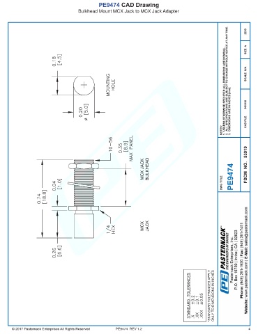 PE9474 CAD Drawing Bulkhead Mount MCX Jack to MCX Jack Adapter PE9474 REV 1.2 4