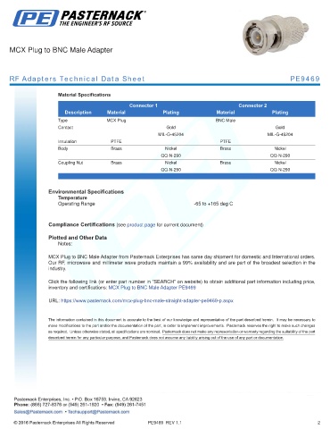 inventory and certifications: MCX Plug to BNC Male Adapter PE9469