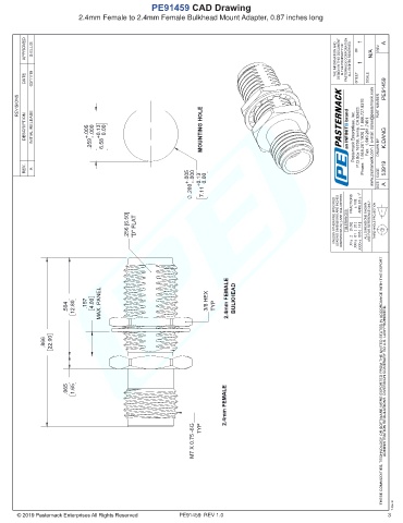 DESCRIPTION INITIAL RELEASE .259 +.005 -.000 6.58 +0.13 0.00 MOUNTING HOLE Pasternack Enterprises, Inc. P.O.Box 16759, Irvine, CA 92623. Phone: 1.949.261.1920 │ 1.866.727.8376 Fax: 1.949.261.7451 www.pasternack.com │ e-mail: sales@pasternack.com K.DANG