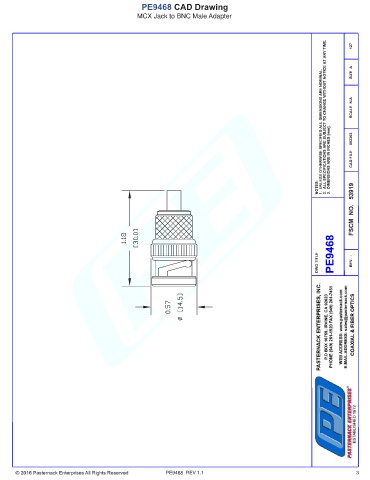 PE9468 CAD Drawing MCX Jack to BNC Male Adapter PE9468 REV 1.1 3