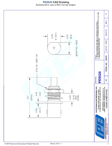 PE9520 CAD Drawing Bulkhead MCX Jack to BNC Female Adapter PE9520 REV 1.1 3