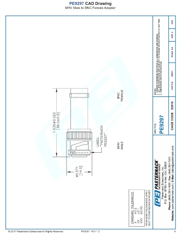 PE9297 CAD Drawing MHV Male to BNC Female Adapter PE9297 REV 1.2 4