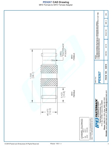 PE9267 CAD Drawing MHV Female to MHV Female Adapter PE9267 REV 1.1 3