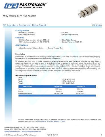 RF Adapters Technical Data Sheet PE9340