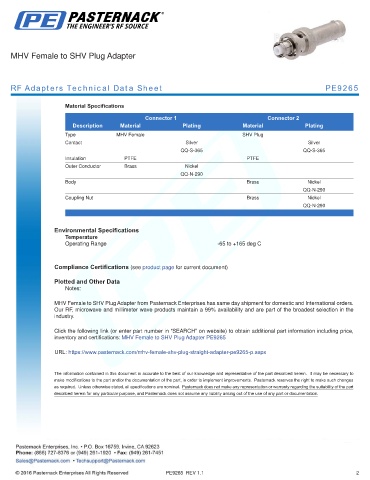 RF Adapters Technical Data Sheet PE9265
