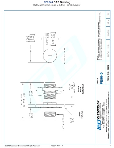 PE9640 CAD Drawing Bulkhead 2.4mm Female to 2.4mm Female Adapter PE9640 REV 1.1 4