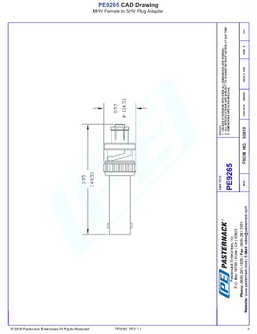 PE9265 CAD Drawing MHV Female to SHV Plug Adapter PE9265 REV 1.1 3