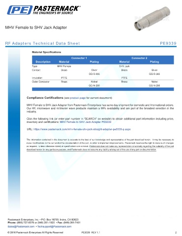 RF Adapters Technical Data Sheet PE9339
