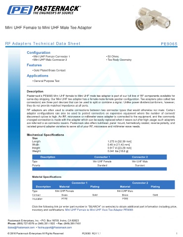 RF Adapters Technical Data Sheet PE9065