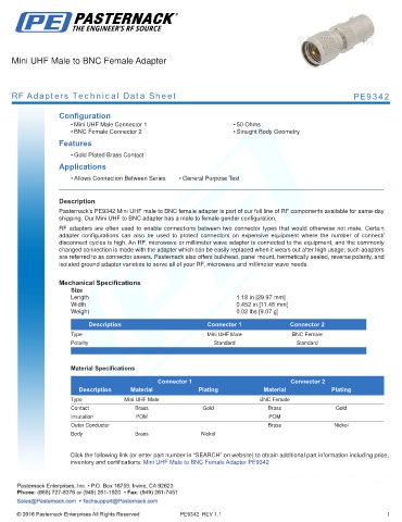 RF Adapters Technical Data Sheet PE9342