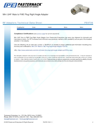 inventory and certifications: Mini UHF Male to FME Plug Right Angle Adapter PE9706