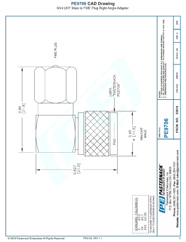 PE9706 CAD Drawing Mini UHF Male to FME Plug Right Angle Adapter PE9706 REV 1.1 3