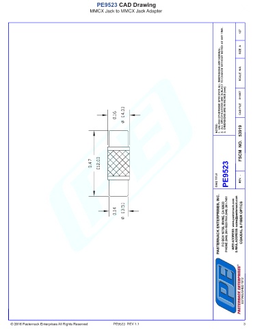 PE9523 CAD Drawing MMCX Jack to MMCX Jack Adapter PE9523 REV 1.1 3