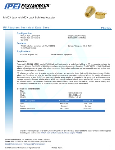 RF Adapters Technical Data Sheet PE9522