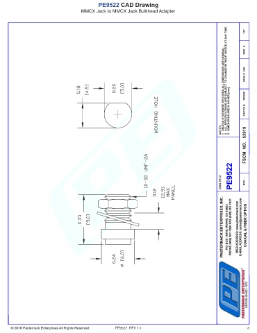 PE9522 CAD Drawing MMCX Jack to MMCX Jack Bulkhead Adapter PE9522 REV 1.1 3