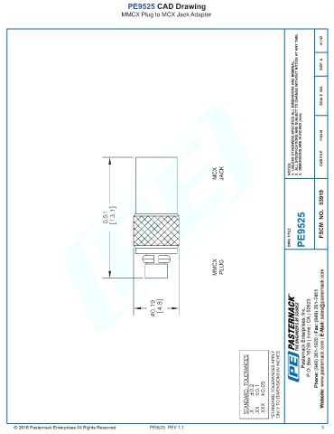 PE9525 CAD Drawing MMCX Plug to MCX Jack Adapter PE9525 REV 1.1 3