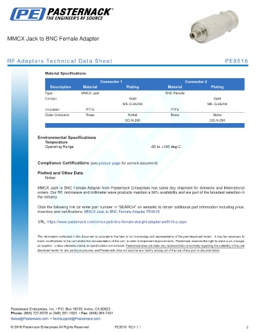 inventory and certifications: MMCX Jack to BNC Female Adapter PE9516