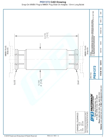 PE91372 CAD Drawing Snap-On MMBX Plug to MMBX Plug Slide-On Adapter, 12mm Long Bullet PE91372 REV 1.0 4
