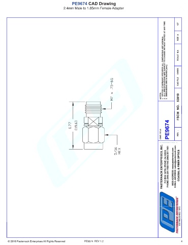 PE9674 CAD Drawing 2.4mm Male to 1.85mm Female Adapter PE9674 REV 1.2 4